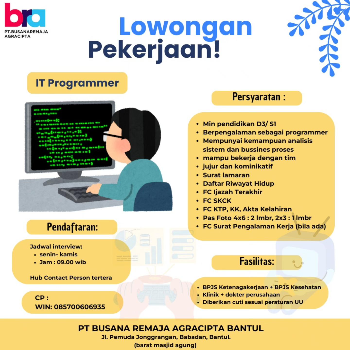 Kami membuka kesempatan untuk bergabung sebagai IT Programmer di Bantul!