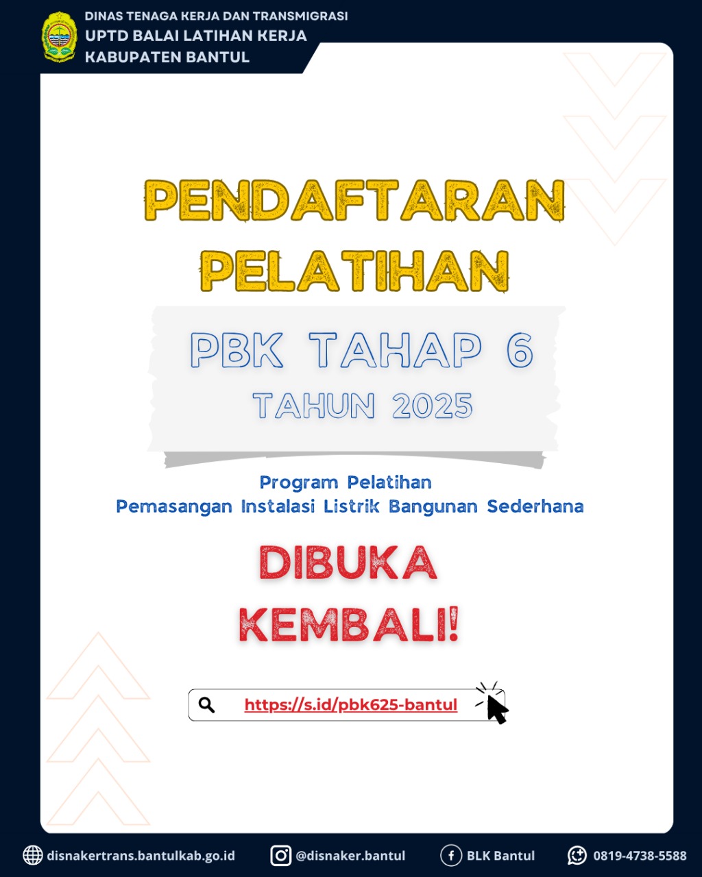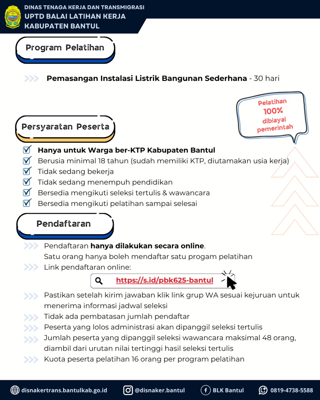 Pendaftaran hanya secara online melalui link: s.id/pbk625-bantul