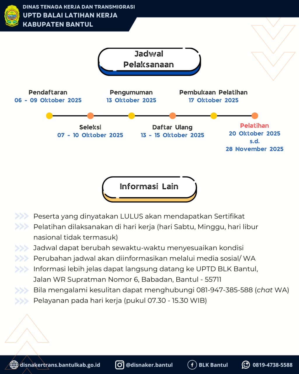 Dibuka lagi kesempatan bagi kamu yang kemarin ketinggalan informasi pendaftaran pelatihan. Sekaranglah saatnya, daftarkan diri kamu segera!