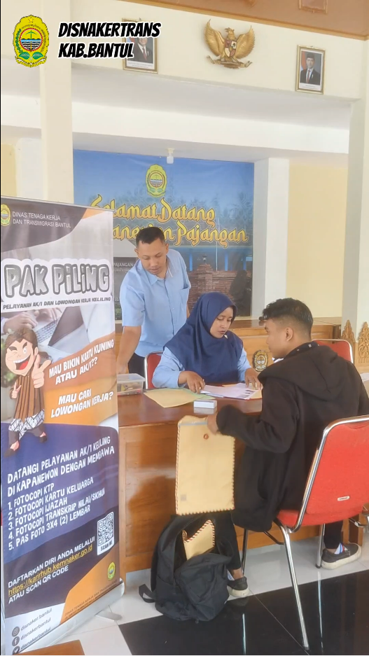 Halo rekan naker..Pak Piling kemarin di Kapanewon Dlingo loo..Selama disana kami melayani informasi pasar kerja dan pembuatan ak 1, atau tanya-tanya yang lain juga bisa.Next Kapanewon mana ya yang...