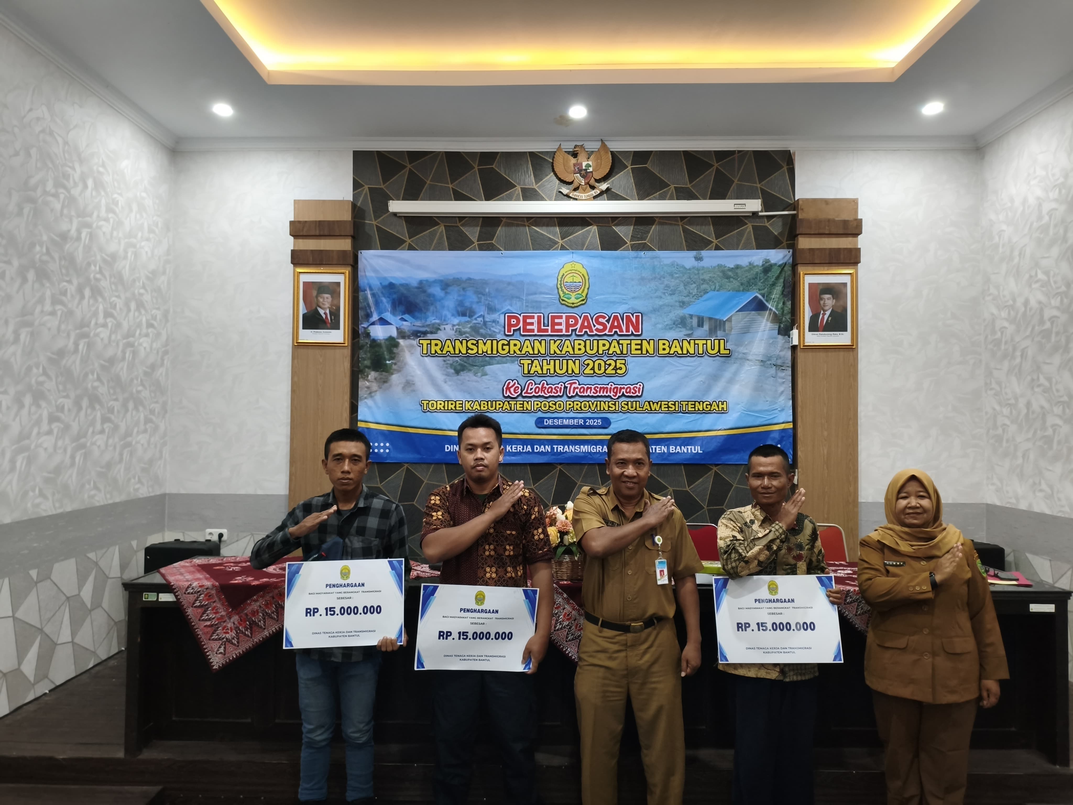 Pelepasan Calon Transmigran asal kabupaten Bantul Tahun 2025 ke Lokasi Transmigrasi Torire, Kabupaten Poso, Provinsi Sulawesi Tengah.